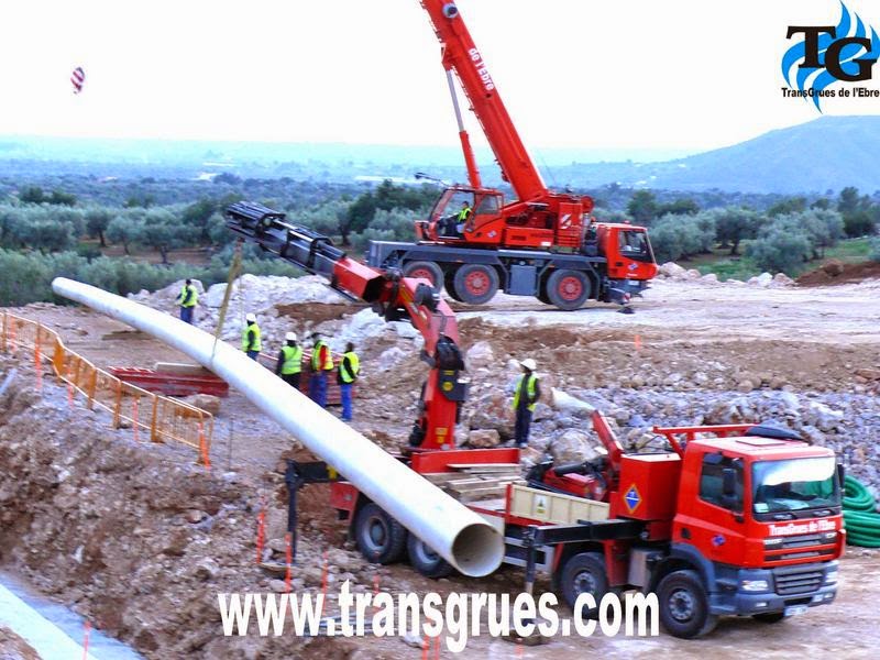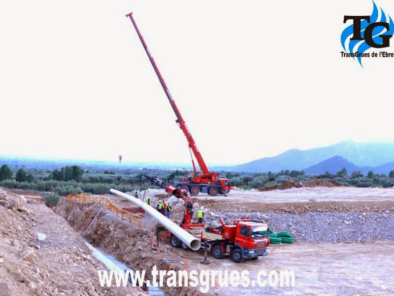 canal Xerta-Senia. Grúas de pluma articulada, camiones autocargantes, grúas móviles